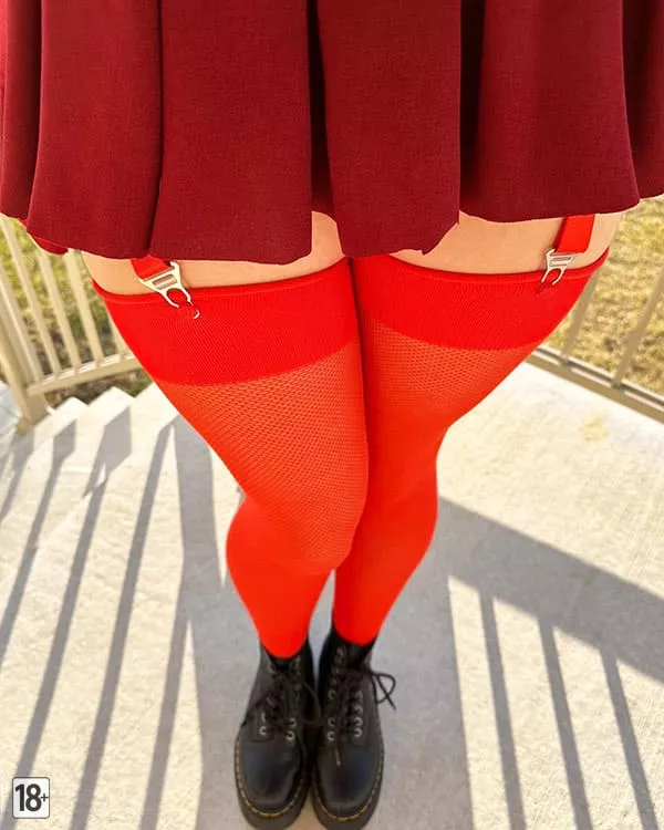 Фото аппетитной молодой красотки на улице в убойно короткой мини-юбке! Под ней мелькают резинки красных чулок с подвязками и сочные голые булочки ее упругой попки – загляденье, аж слюнки текут. Хочешь подсмотреть, как она виляет бедрами?