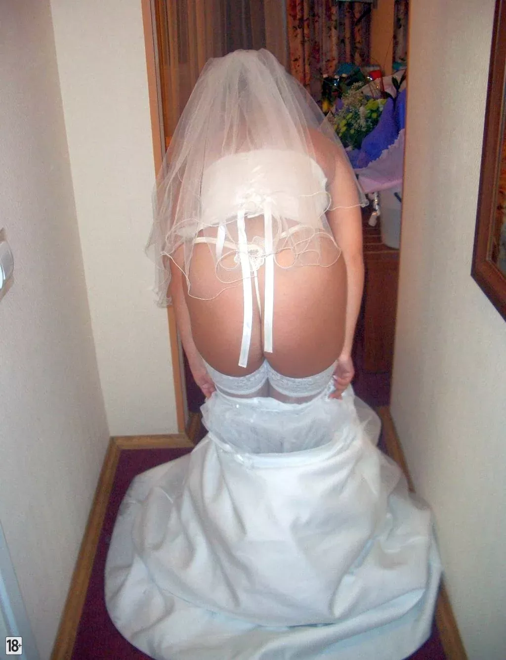 Невеста с упругой попкой в эротической съёмке после свадьбы